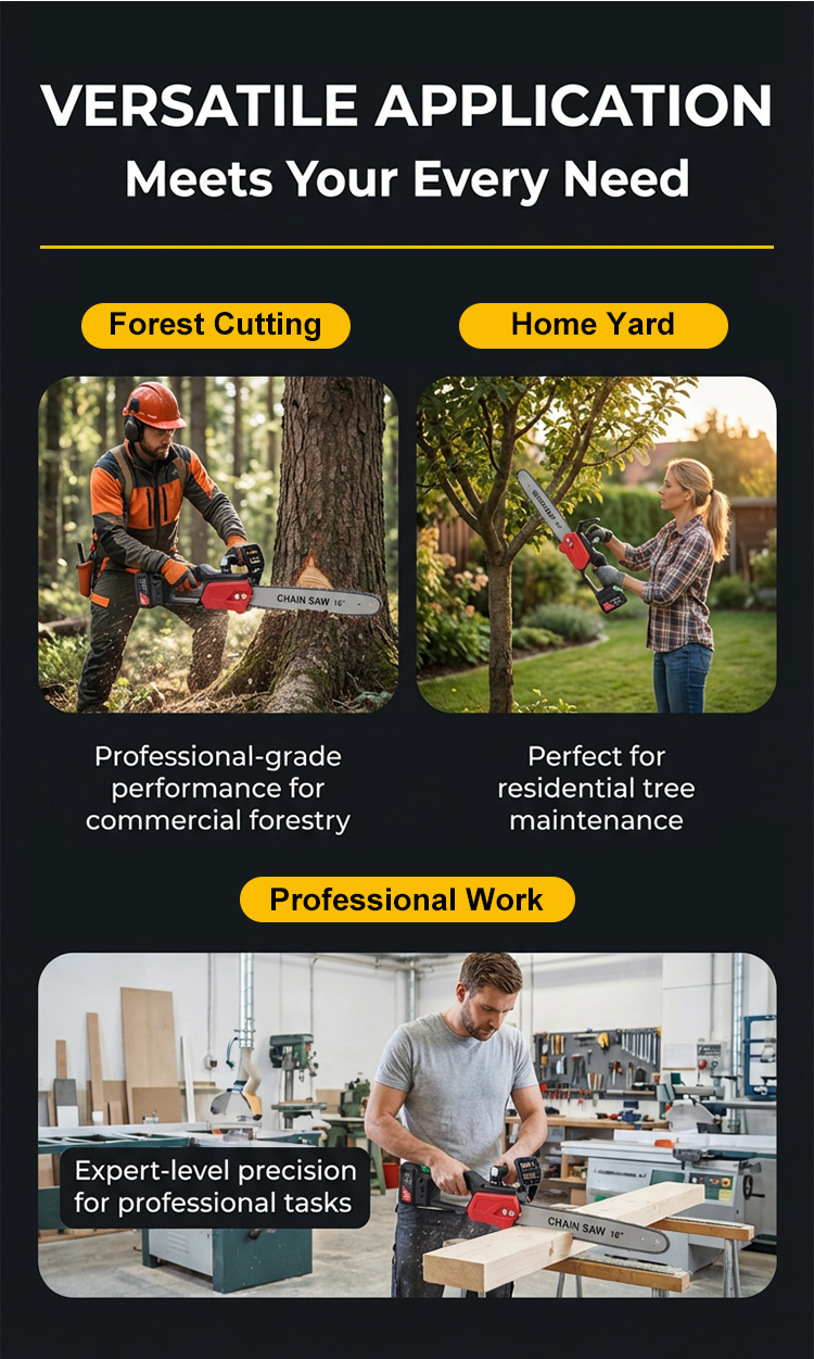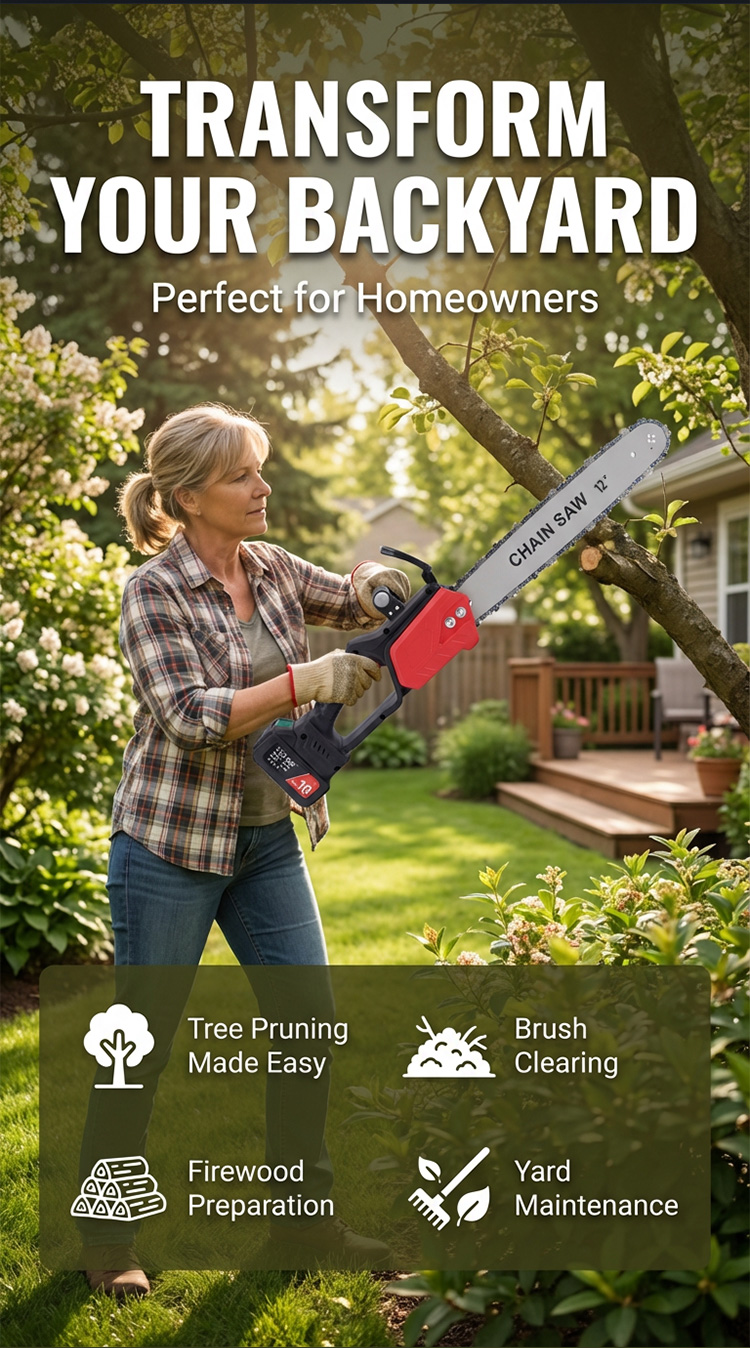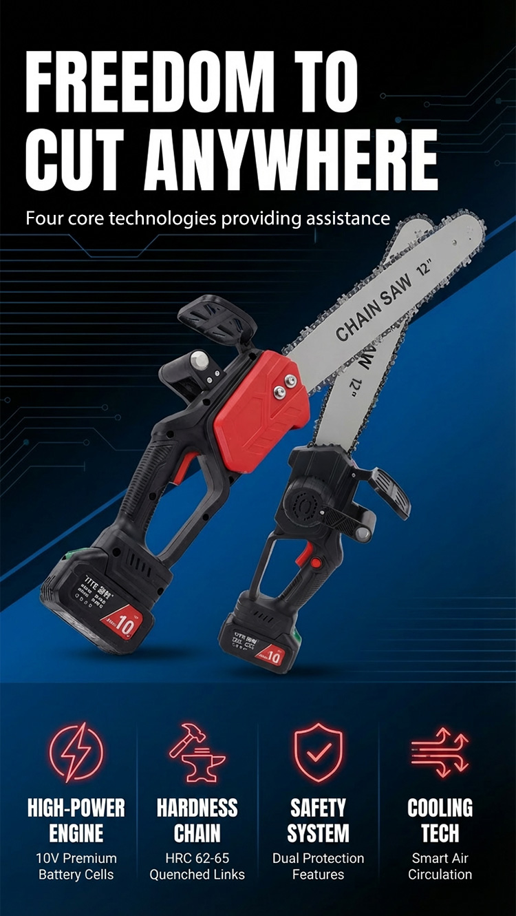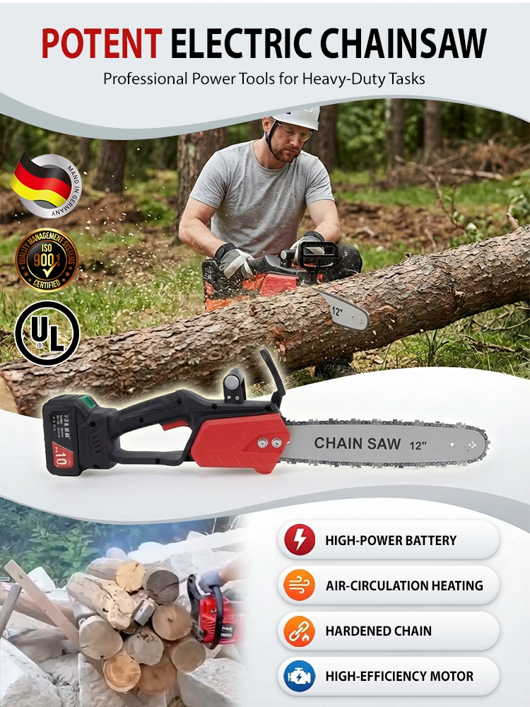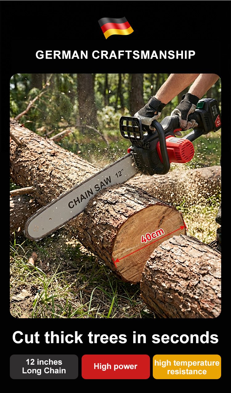 【🪚High-Power Electric Chainsaw】👍Cuts through concrete in 3 seconds - 💌Lightweight enough for one-handed use by women - 🔕Quiet operation with long-lasting battery life